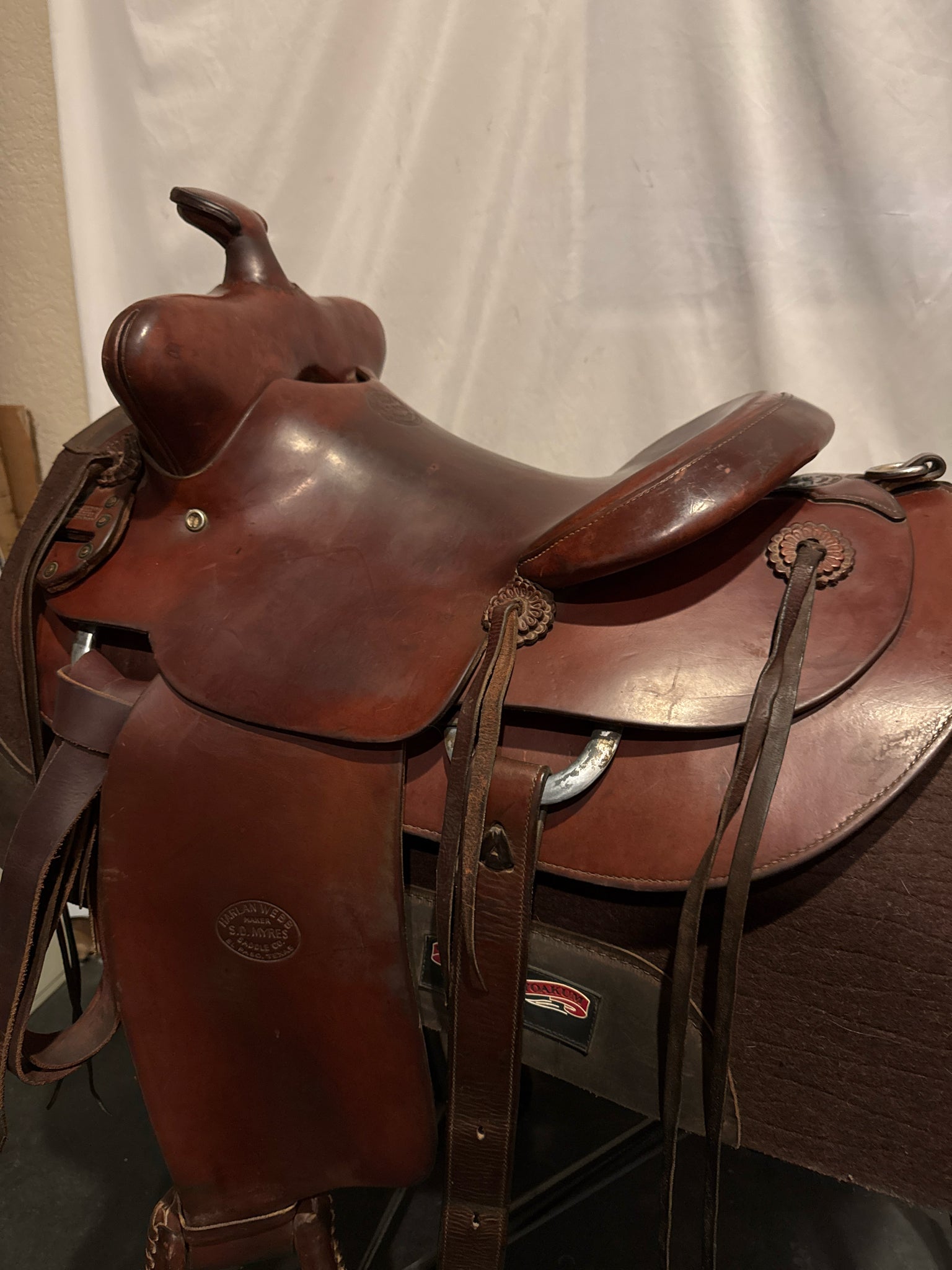 Harlan Webb S. D. Myres Seat Size 14" Med. Oil Leather 6" Pleasure Saddle