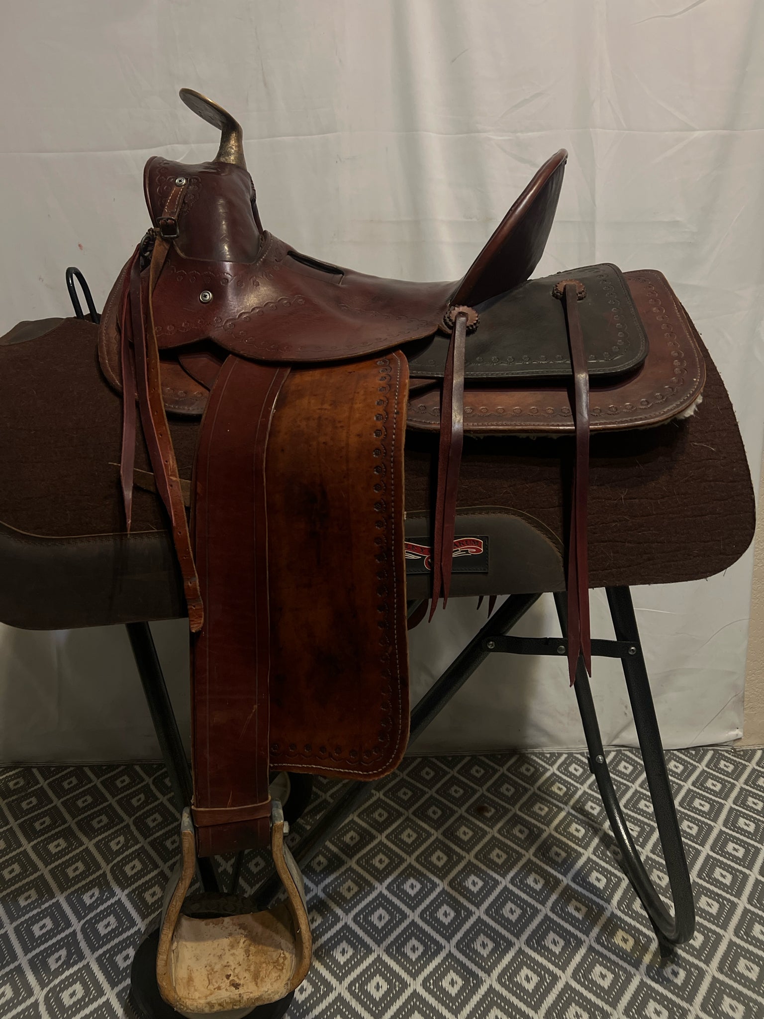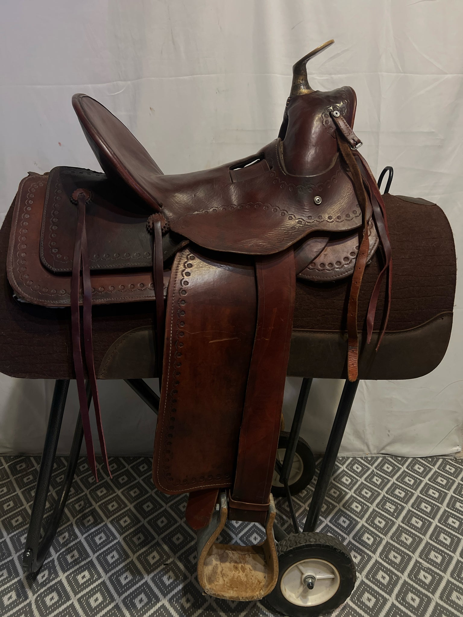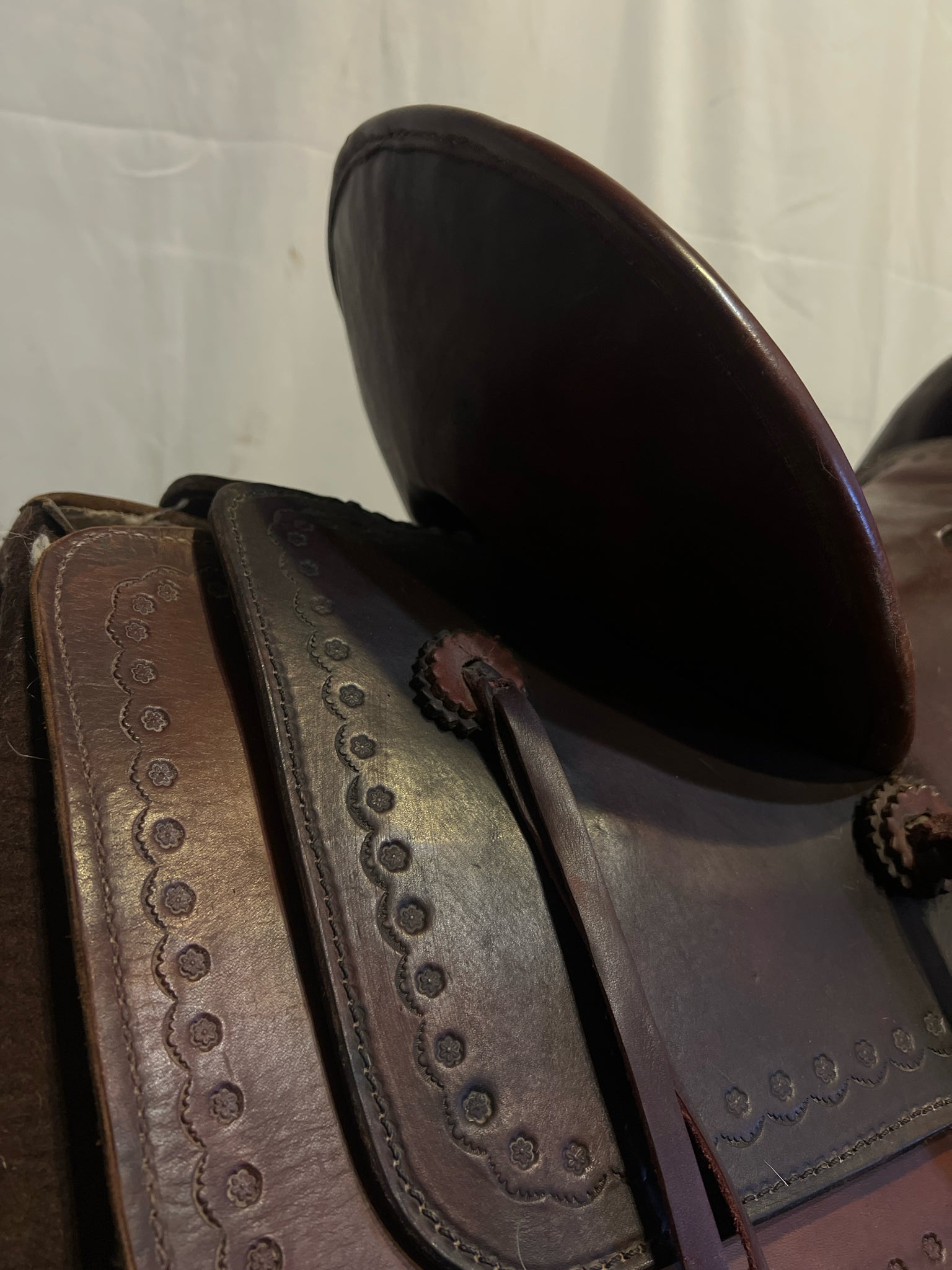 Seat Size 15" Dark Oiled Leather 5" Border USED Excellent Pleasure Saddle