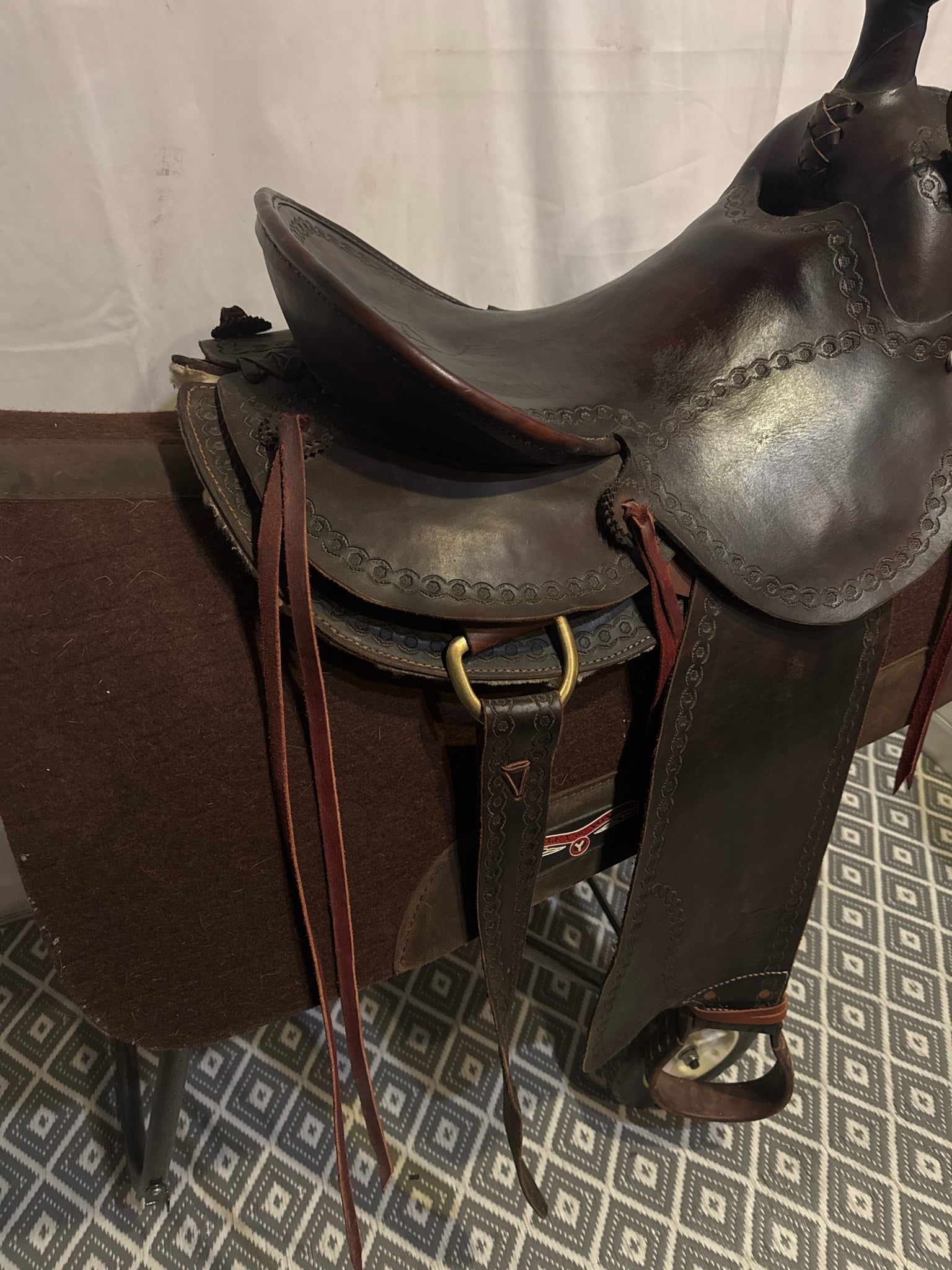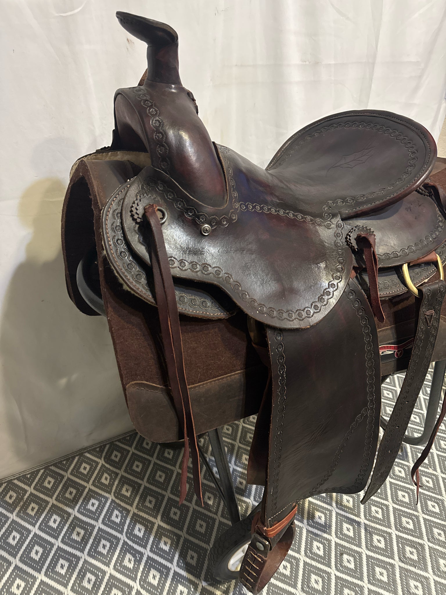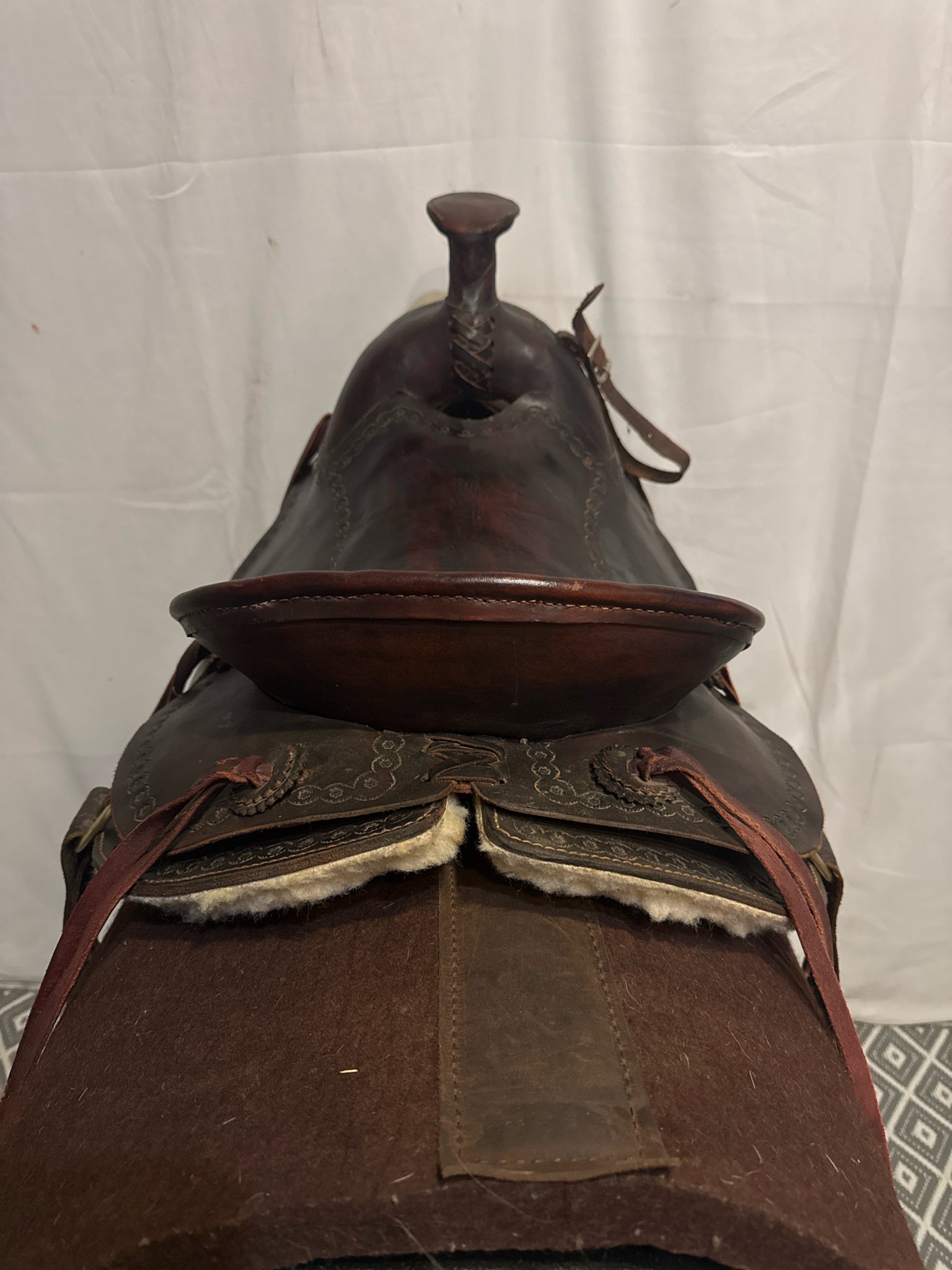 Seat Size 15" Dark Oiled Leather 7" Border USED Excellent Pleasure Saddle