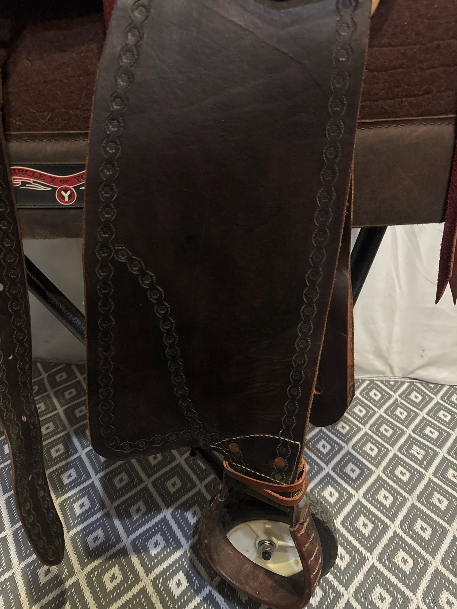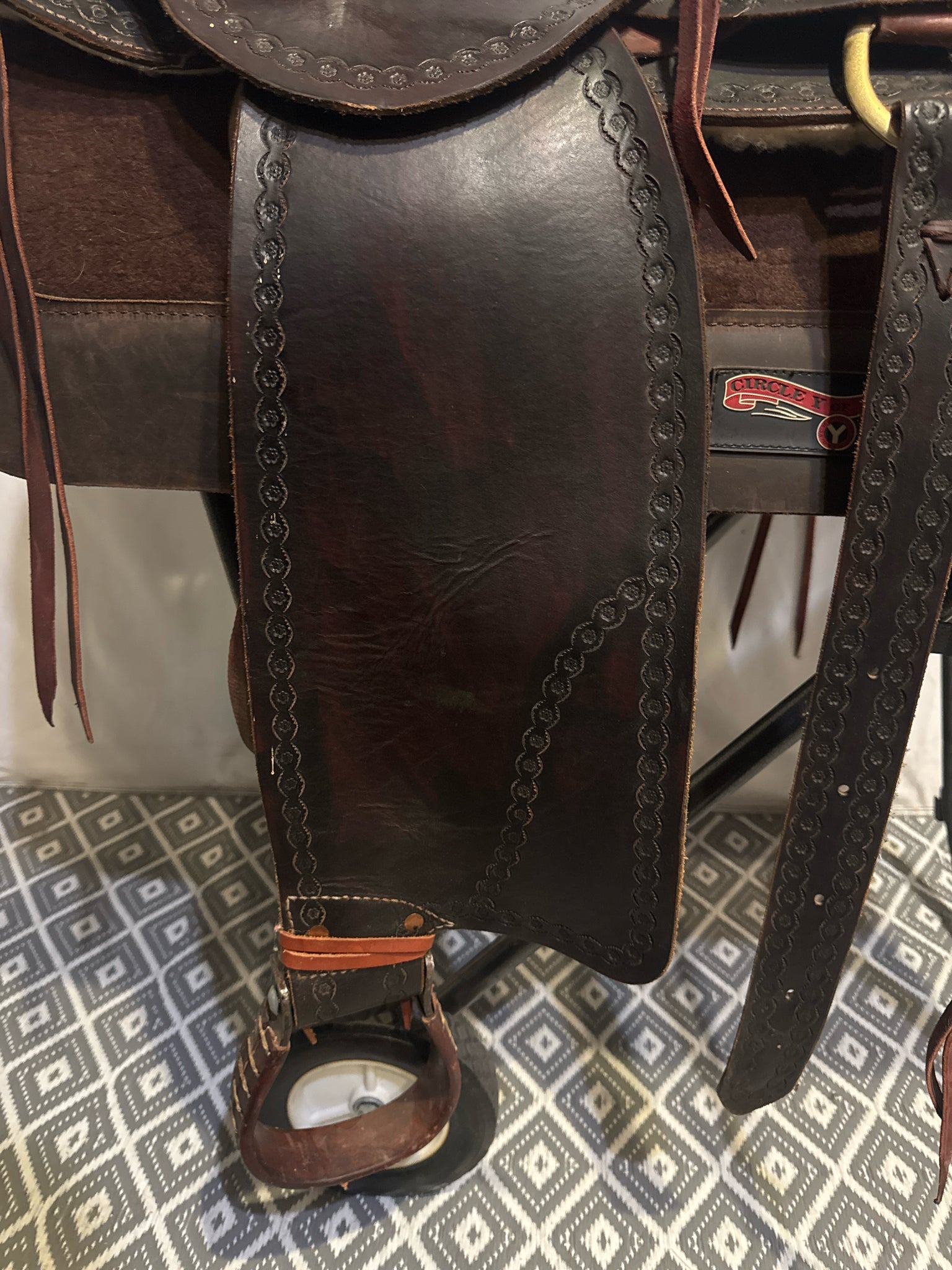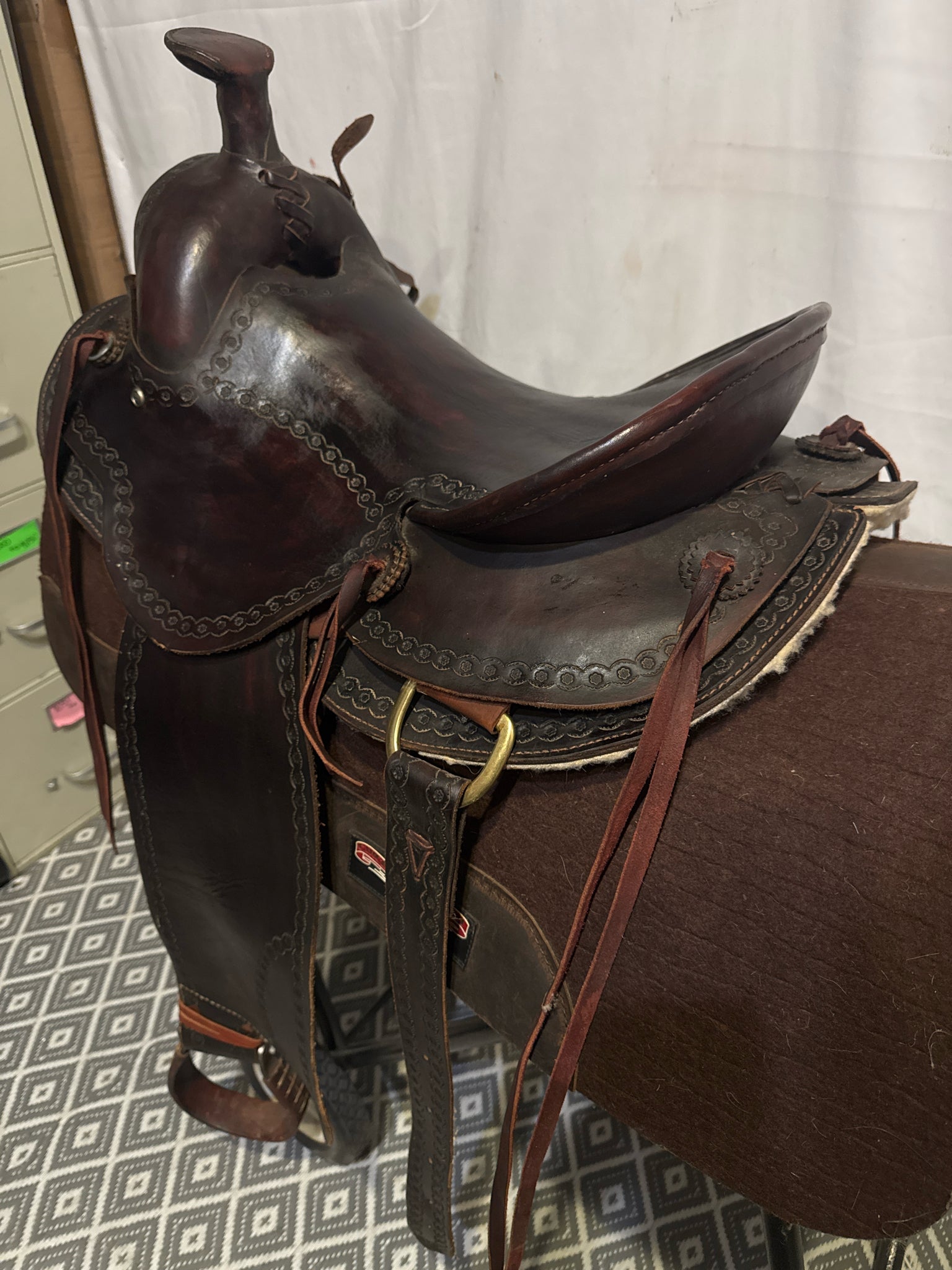 Seat Size 15" Dark Oiled Leather 7" Border USED Excellent Pleasure Saddle
