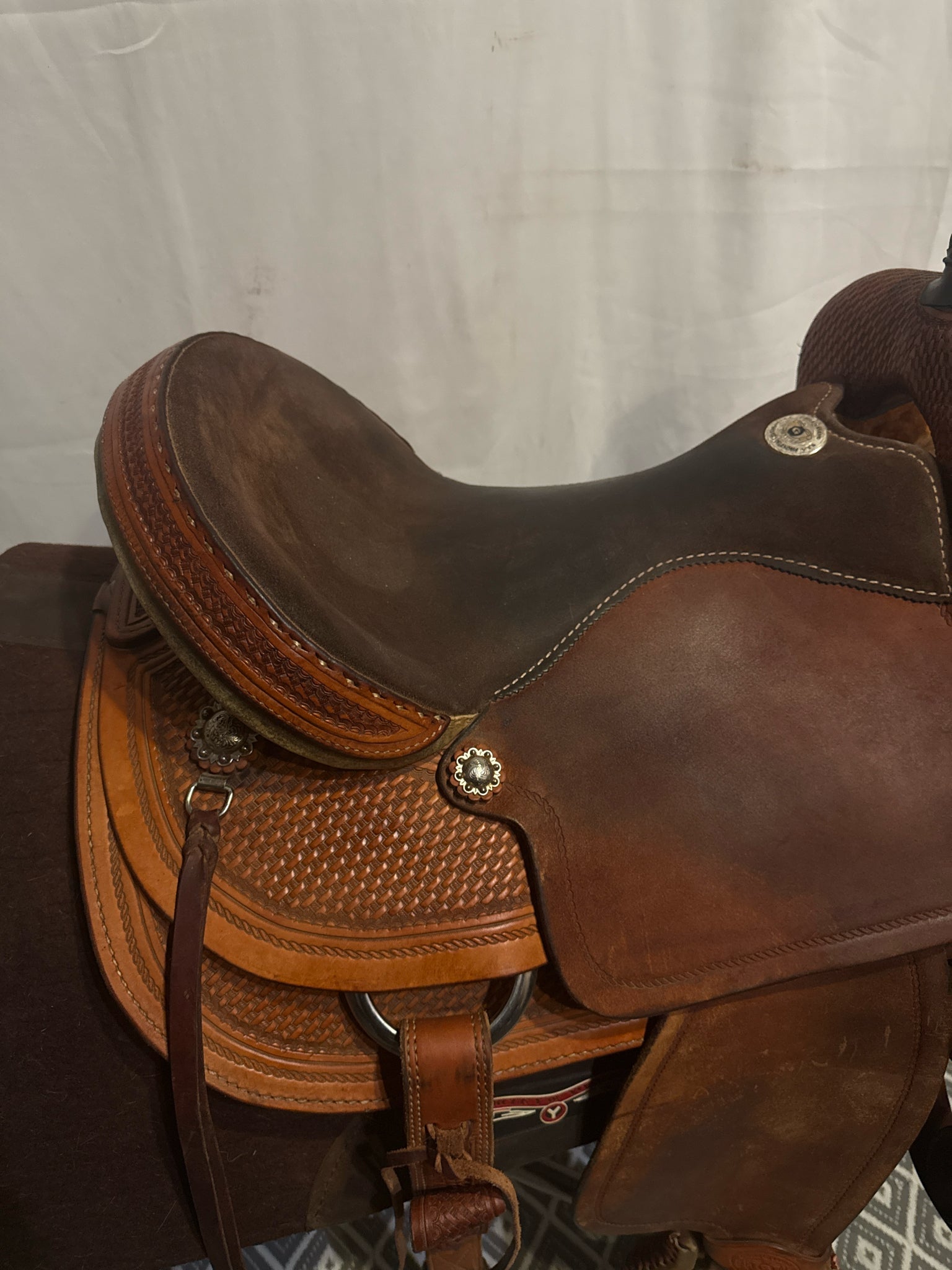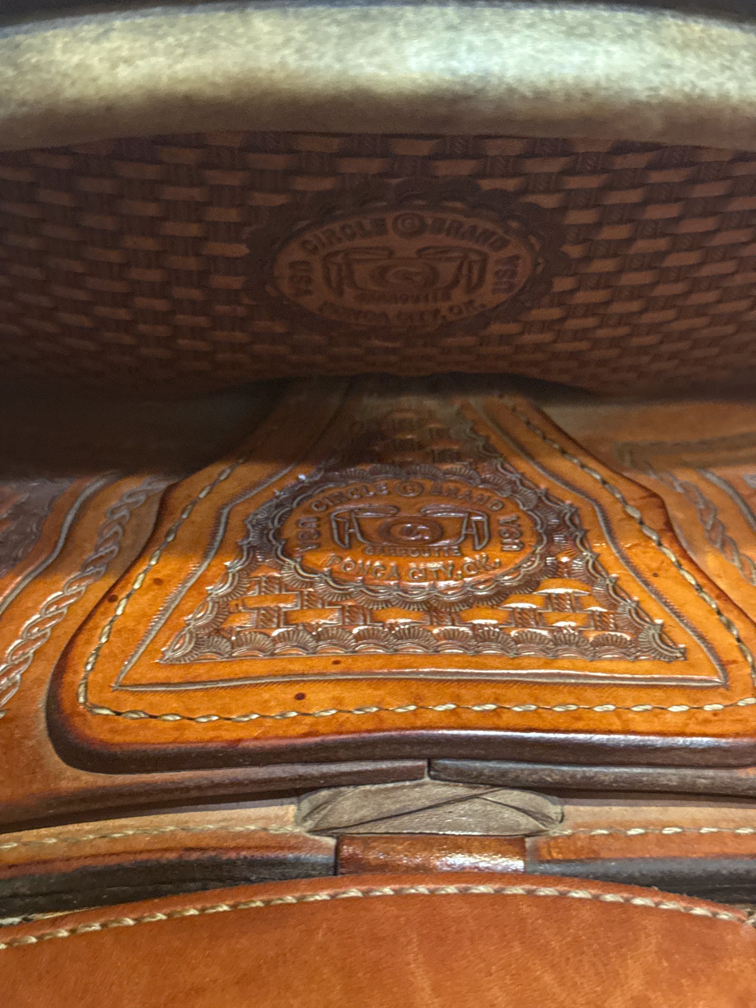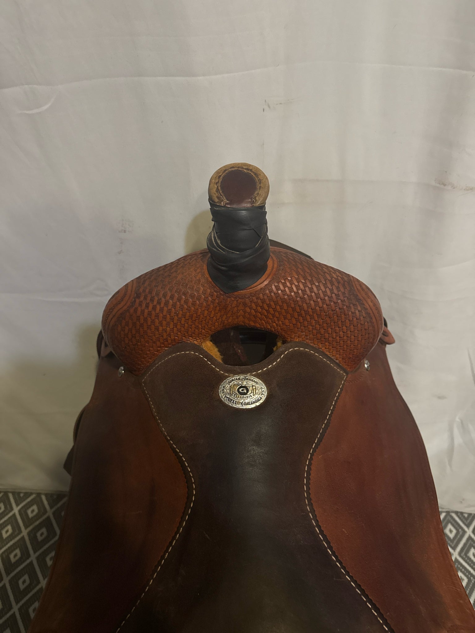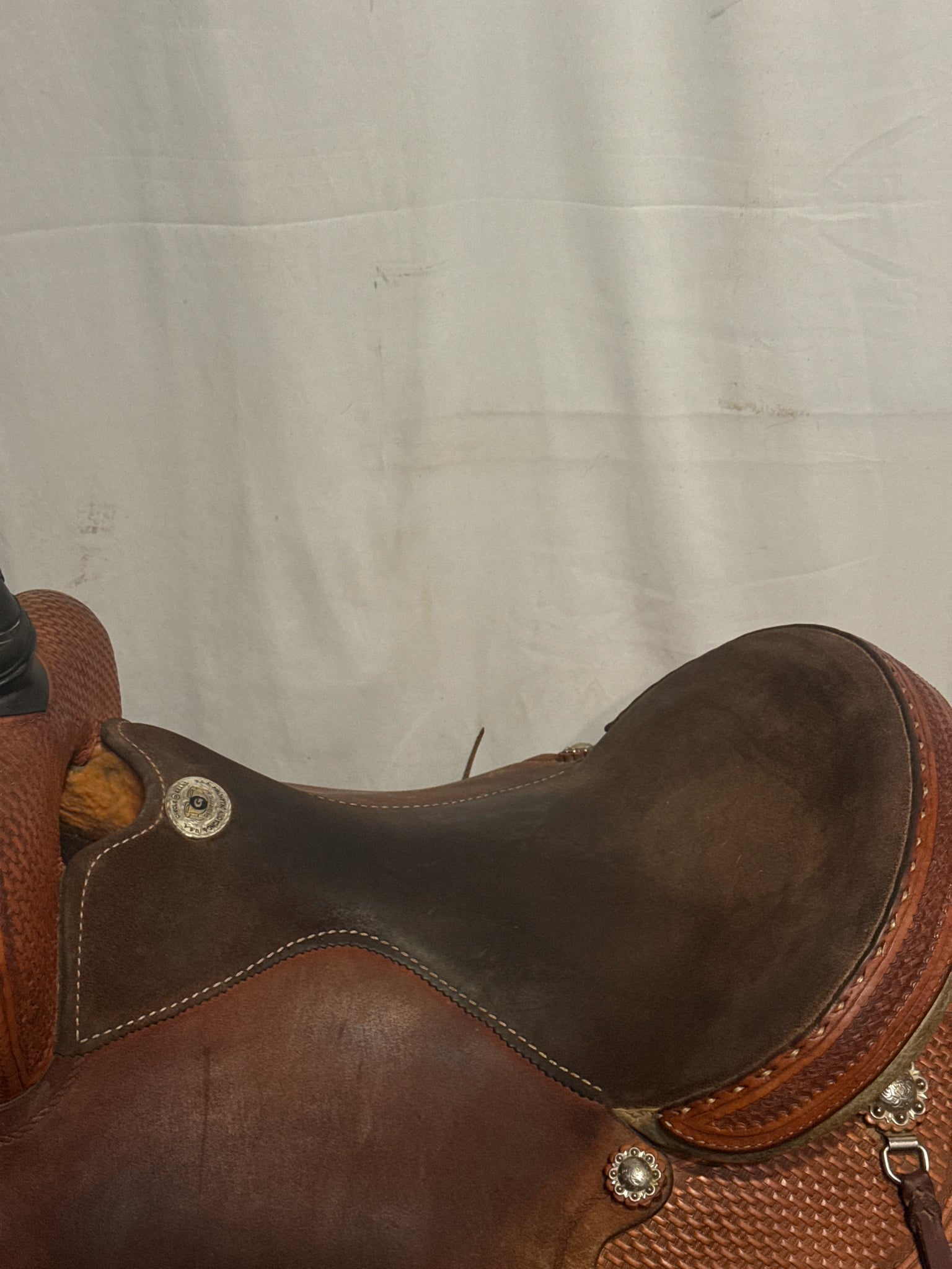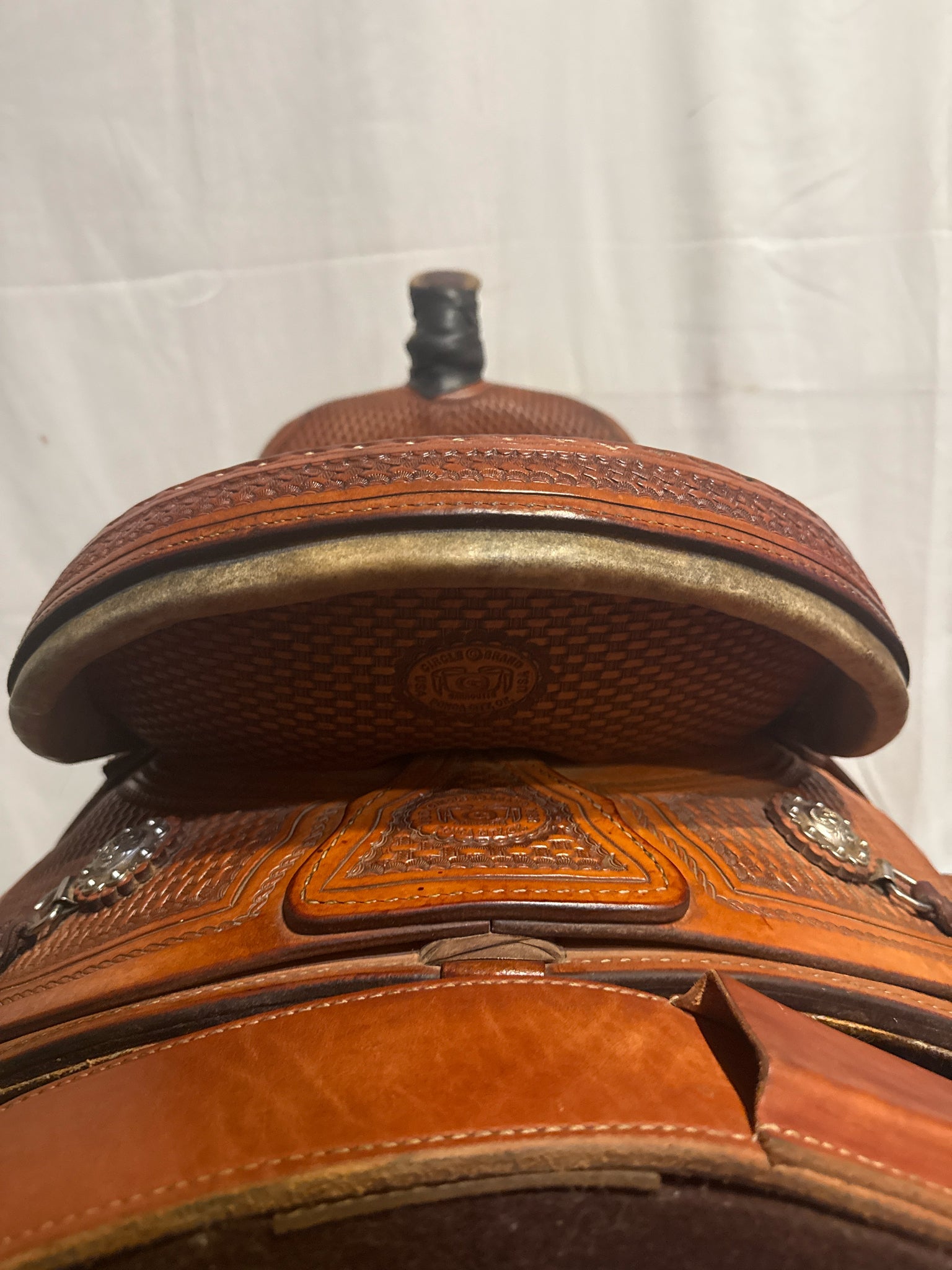 Circle G Roper Seat Size 16.5" Med. Oil Roughout 7" Basketweave Pleasure Saddle