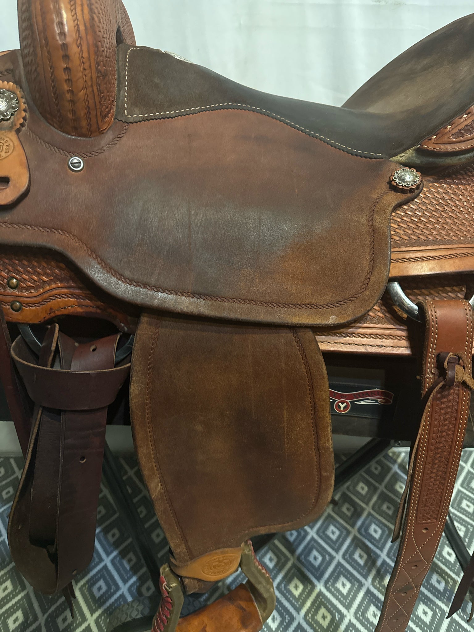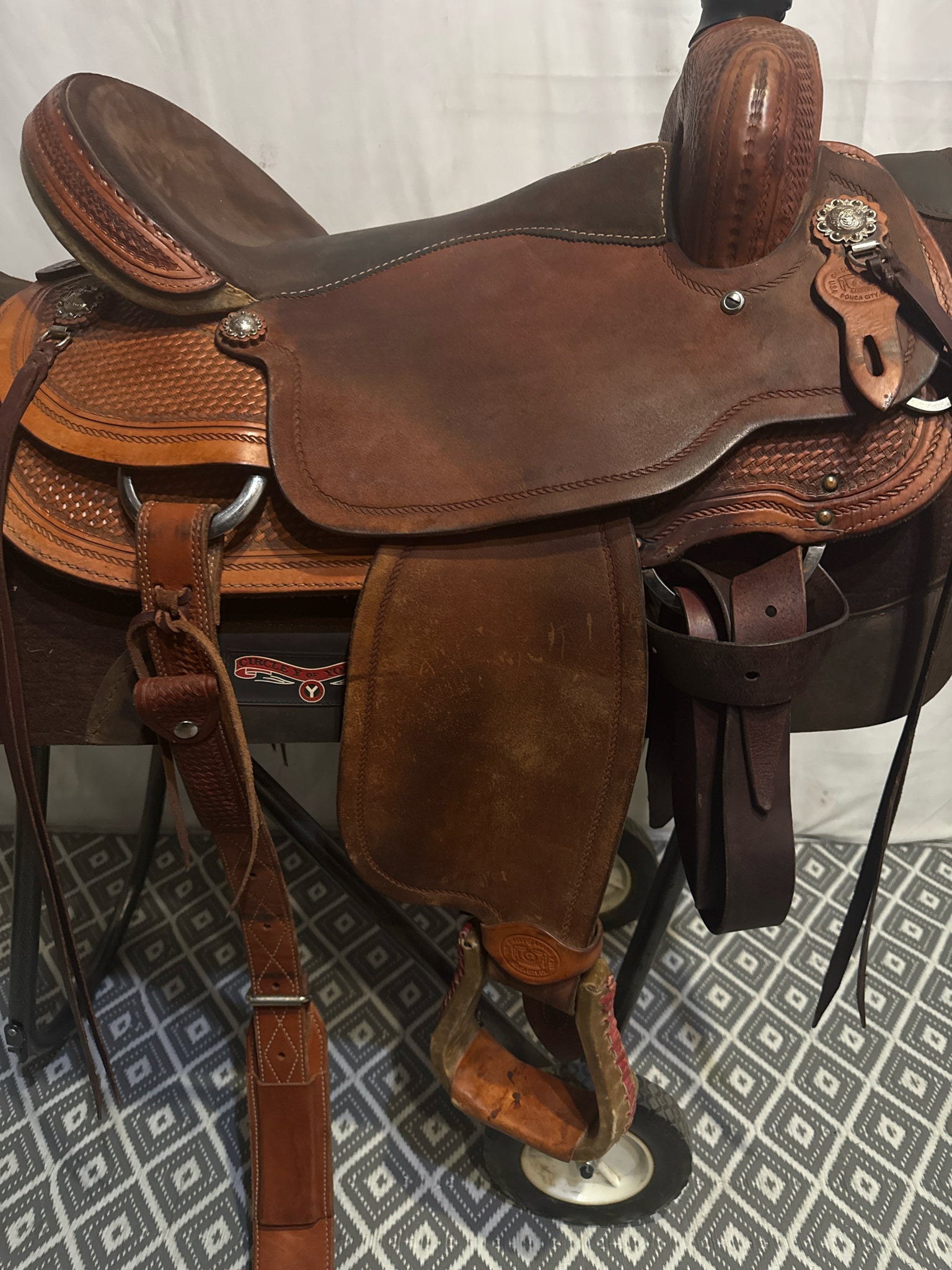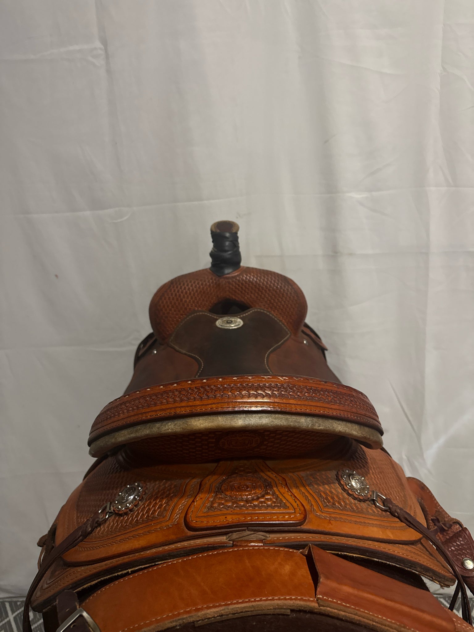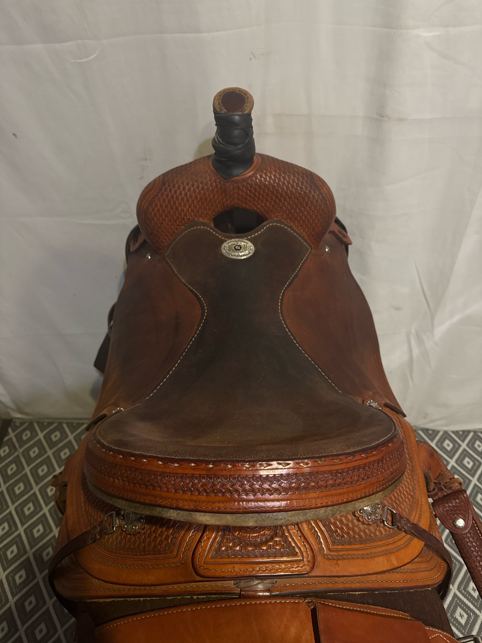 Circle G Roper Seat Size 16.5" Med. Oil Roughout 7" Basketweave Pleasure Saddle
