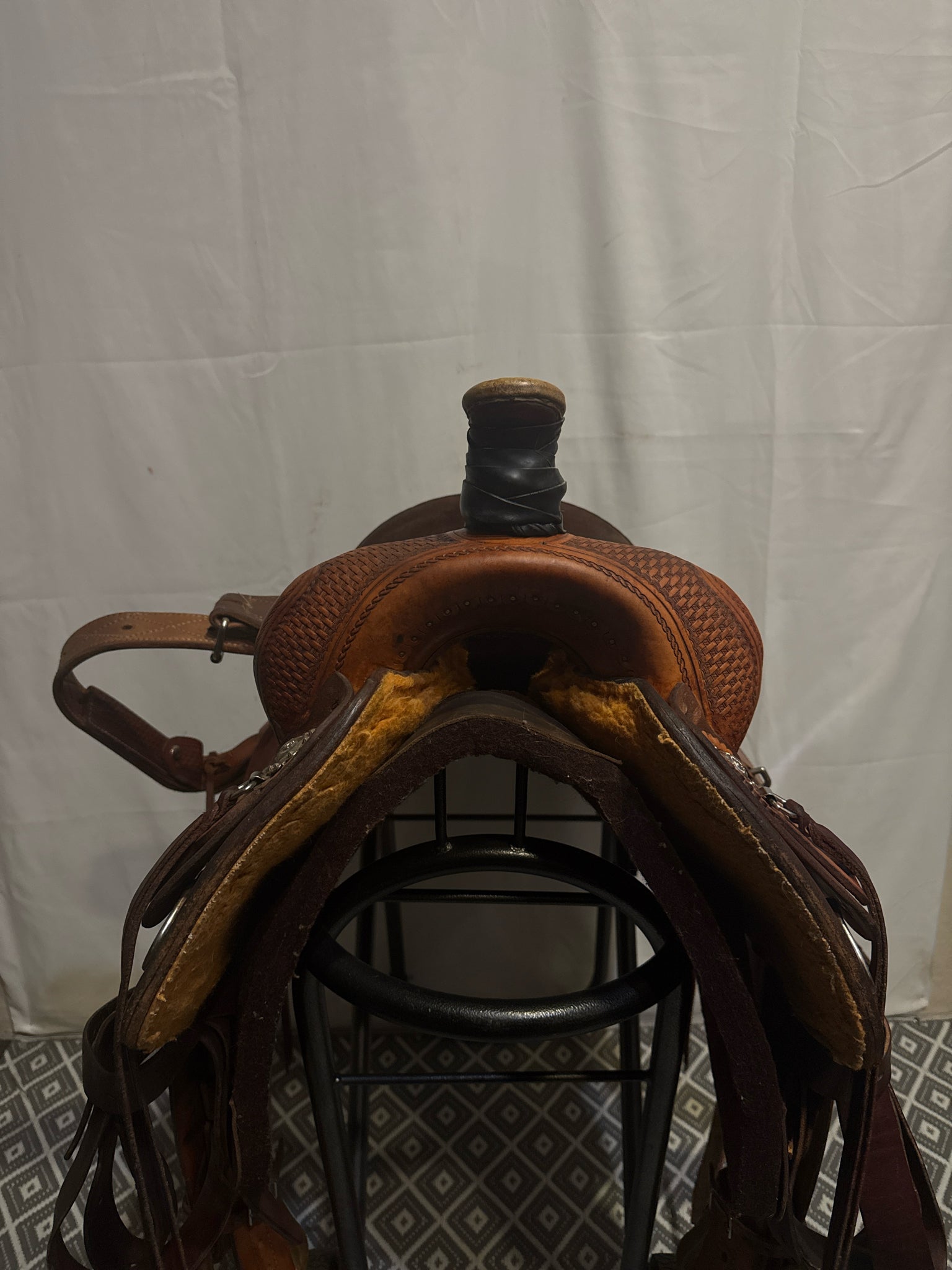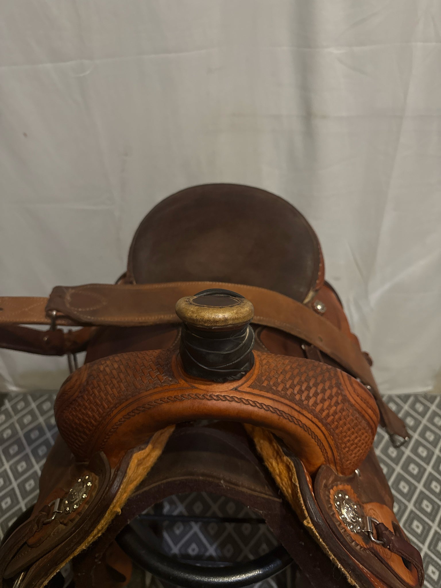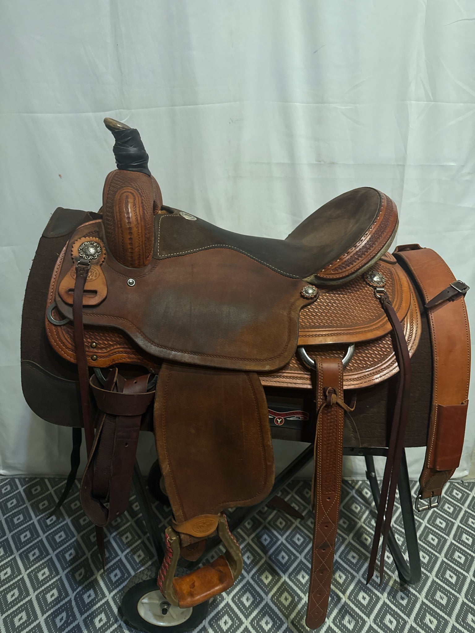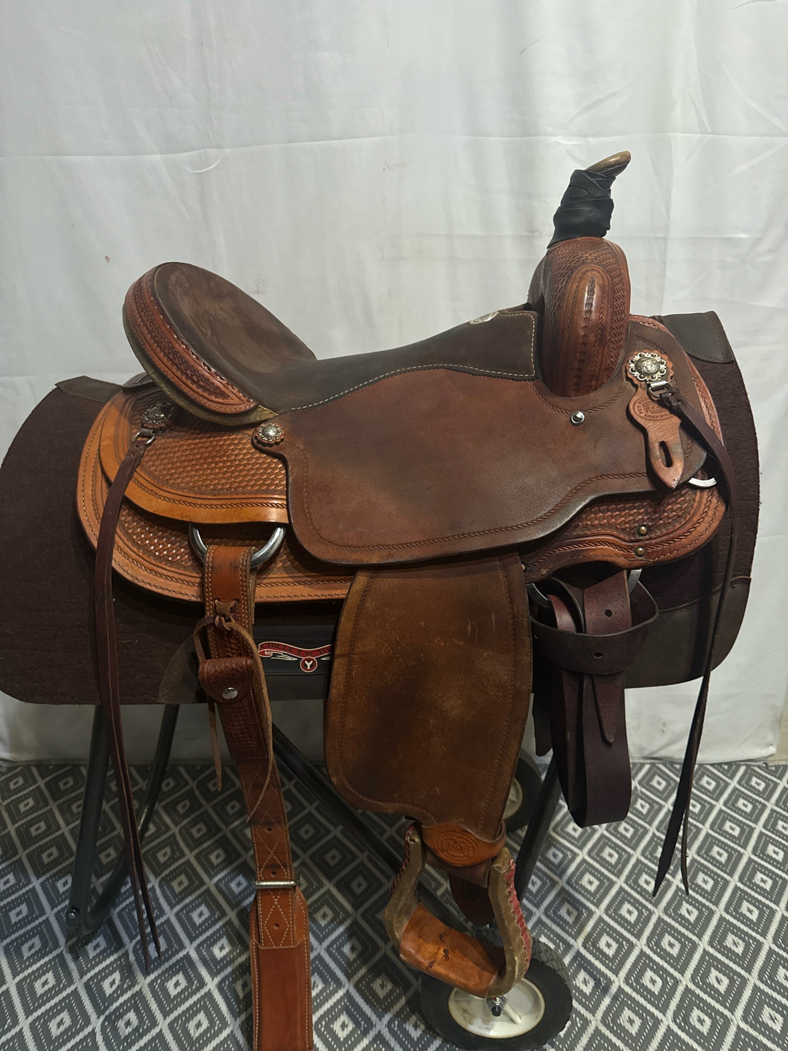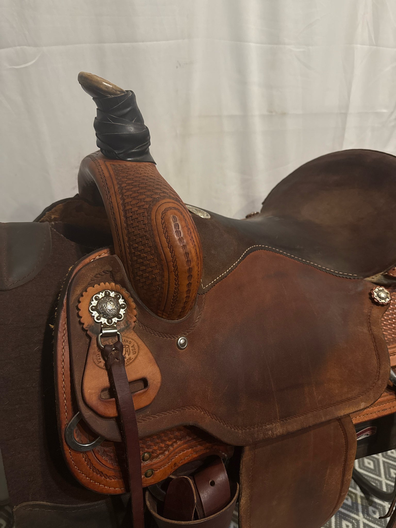 Circle G Roper Seat Size 16.5" Med. Oil Roughout 7" Basketweave Pleasure Saddle