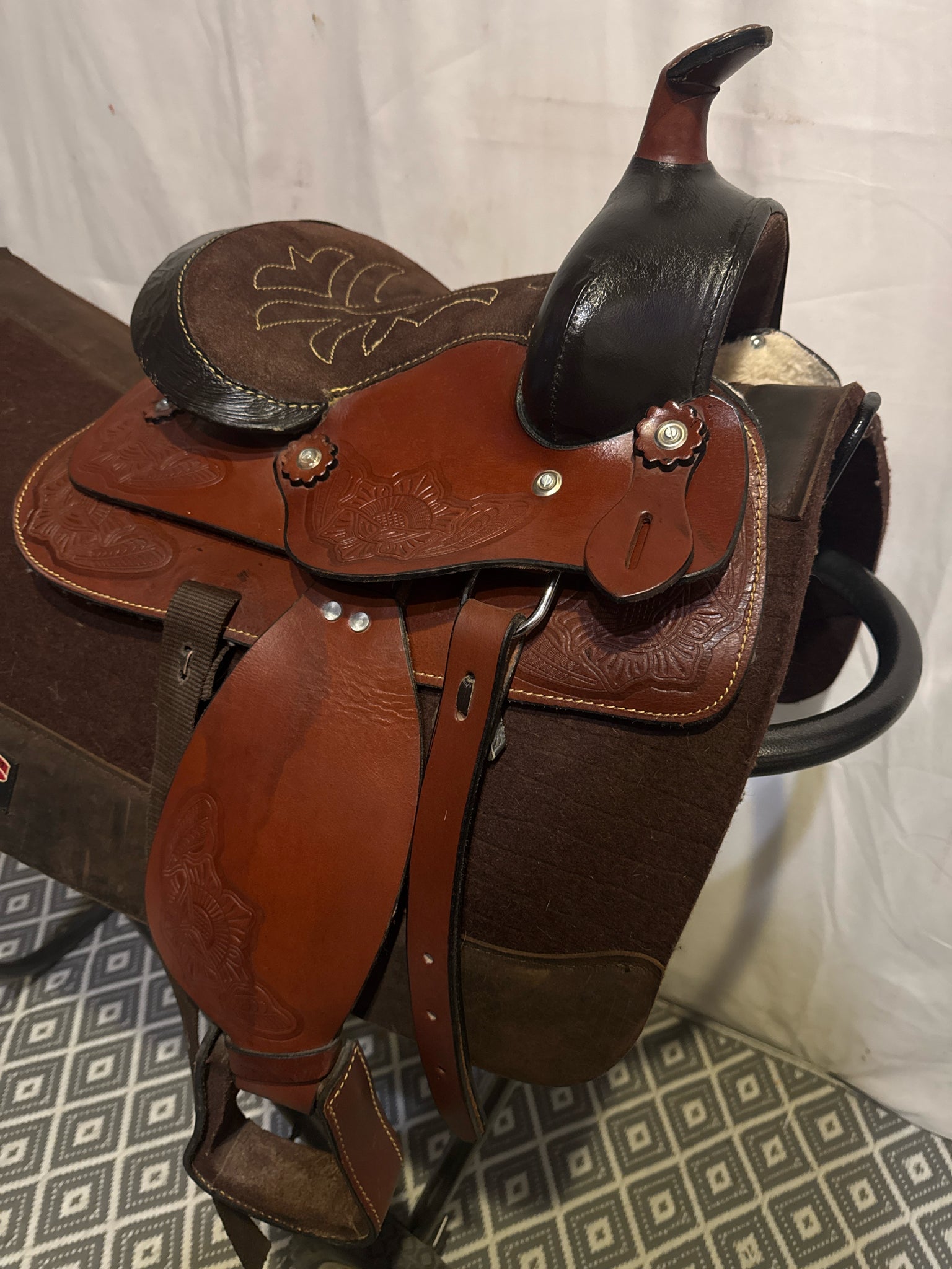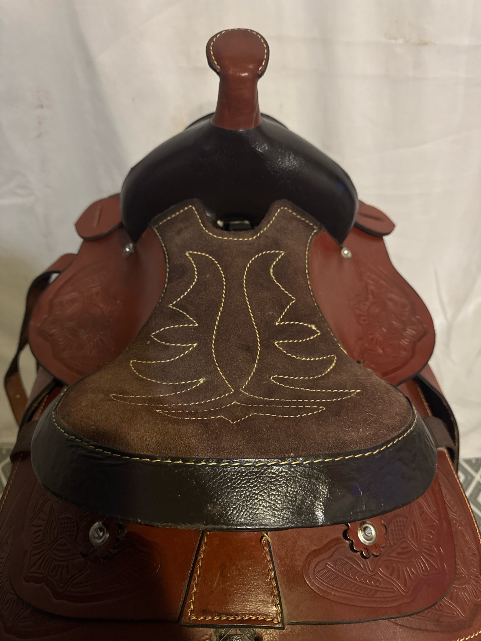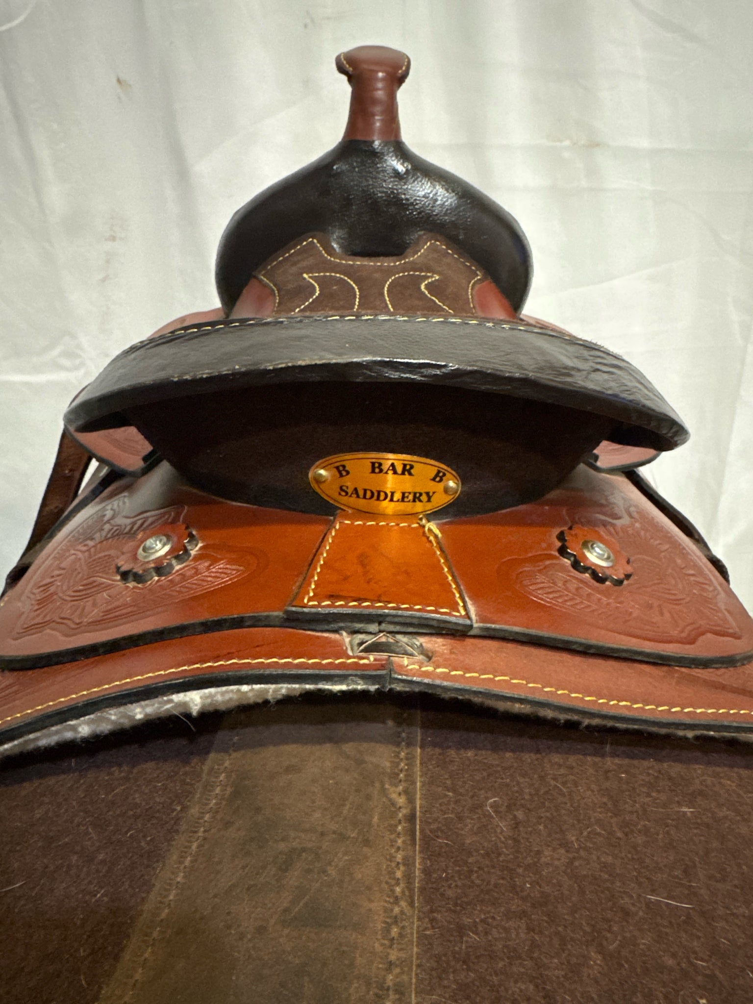 B Bar B Youth Seat Size 9.5" Med. Oil 6" USED Excellent Pleasure Saddle