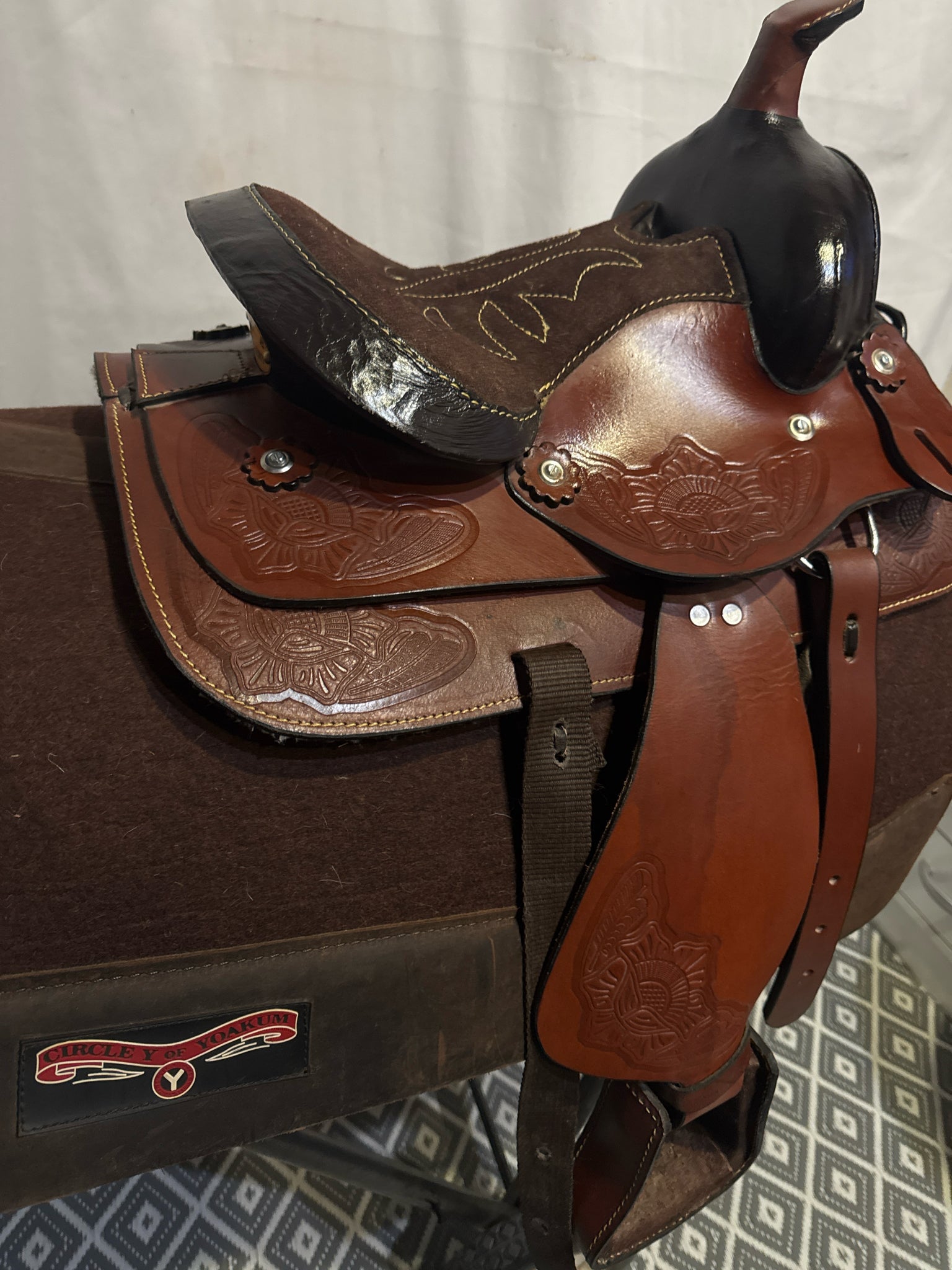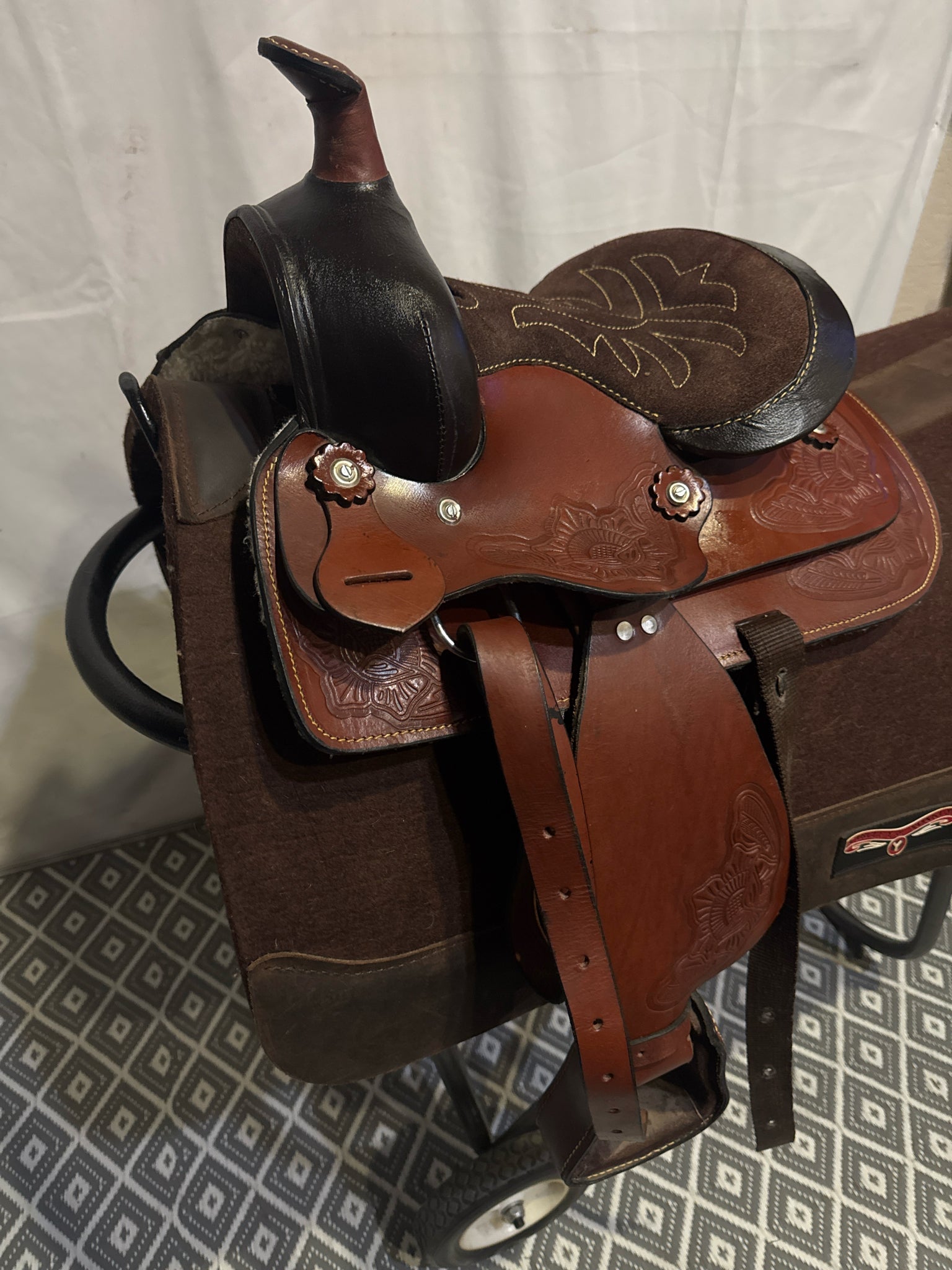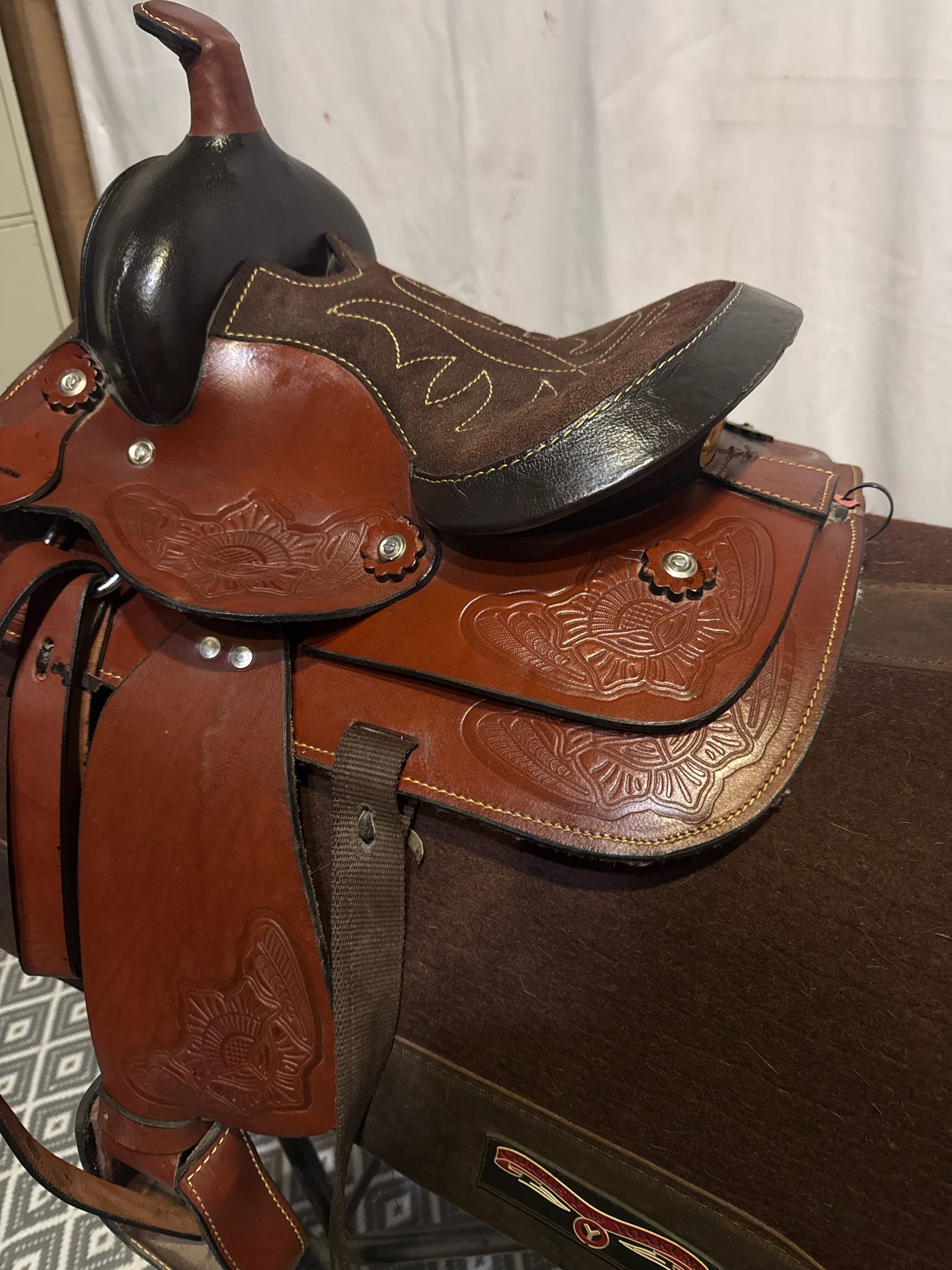 B Bar B Youth Seat Size 9.5" Med. Oil 6" USED Excellent Pleasure Saddle