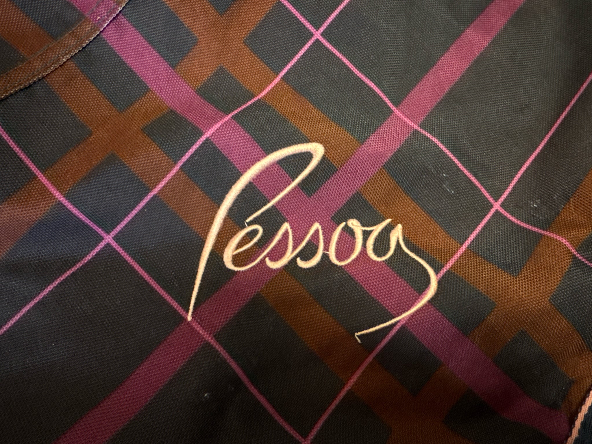 - Color = Fuscia/Navy Plaid