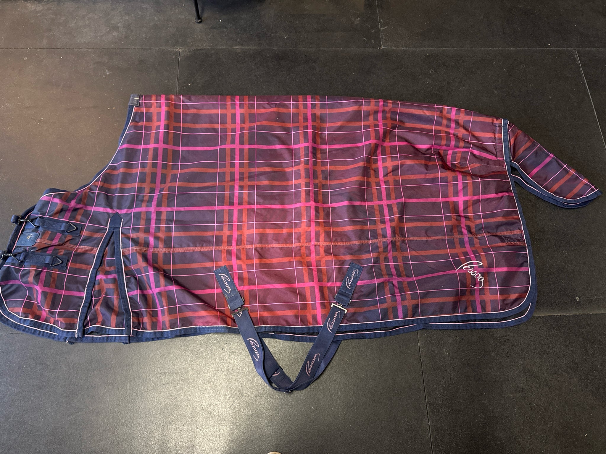 Pessoa Alpine Fuscia/Navy Plaid Lightweight USED Excellent Turnout Blanket