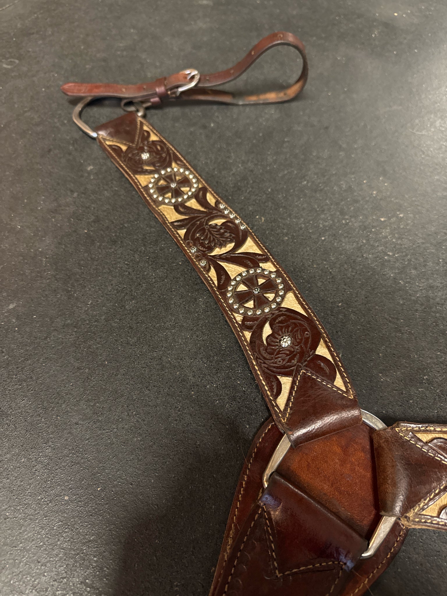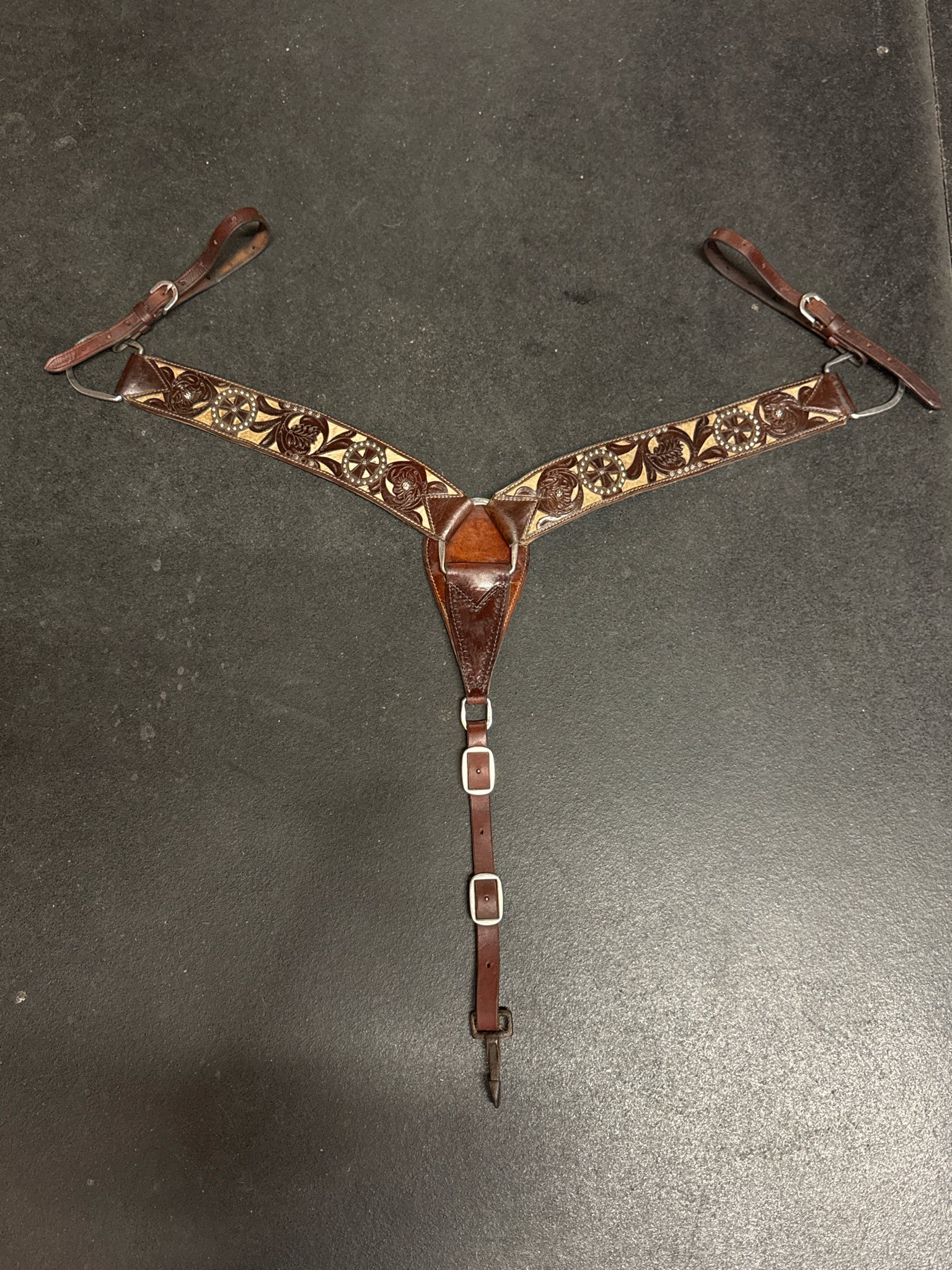 Showman Cowhide Dark Oiled Floral USED Excellent Breast Collar - Everyday