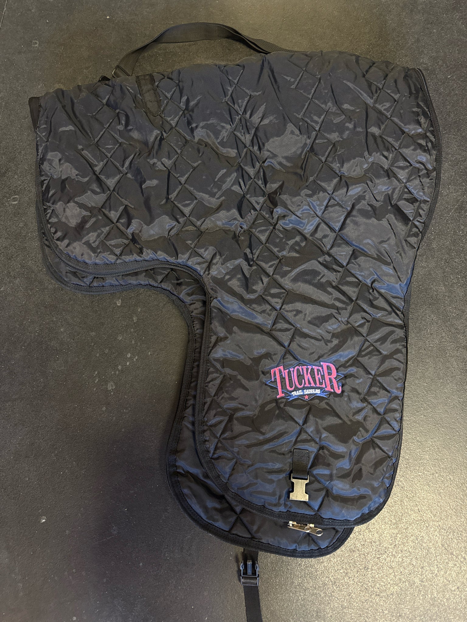 2020. 17" padded to a 16.5". Like new. Comes w/ matching Tucker Breast collar and Black Tucker Carrier. English rigging. Endurance stirrups.