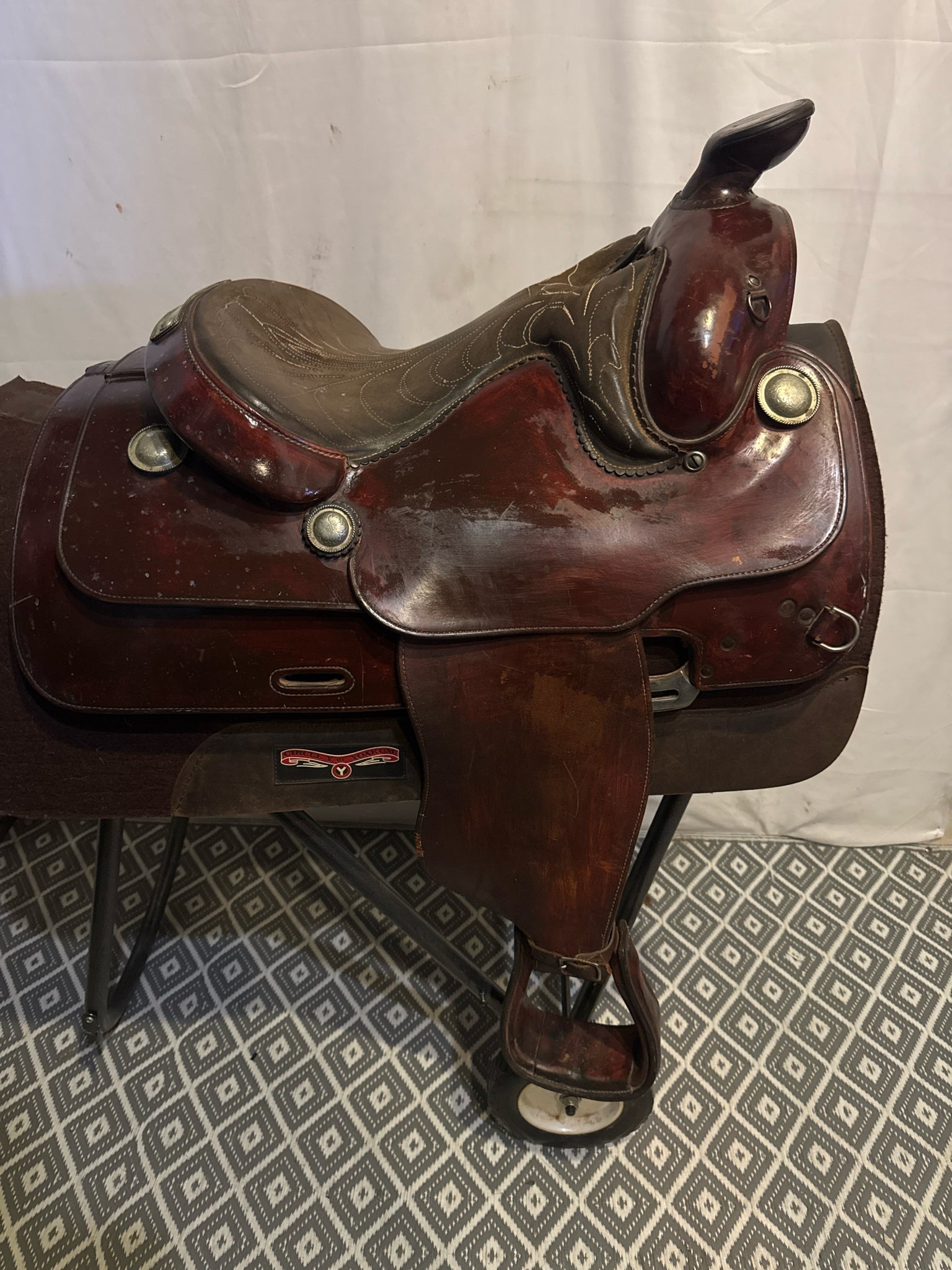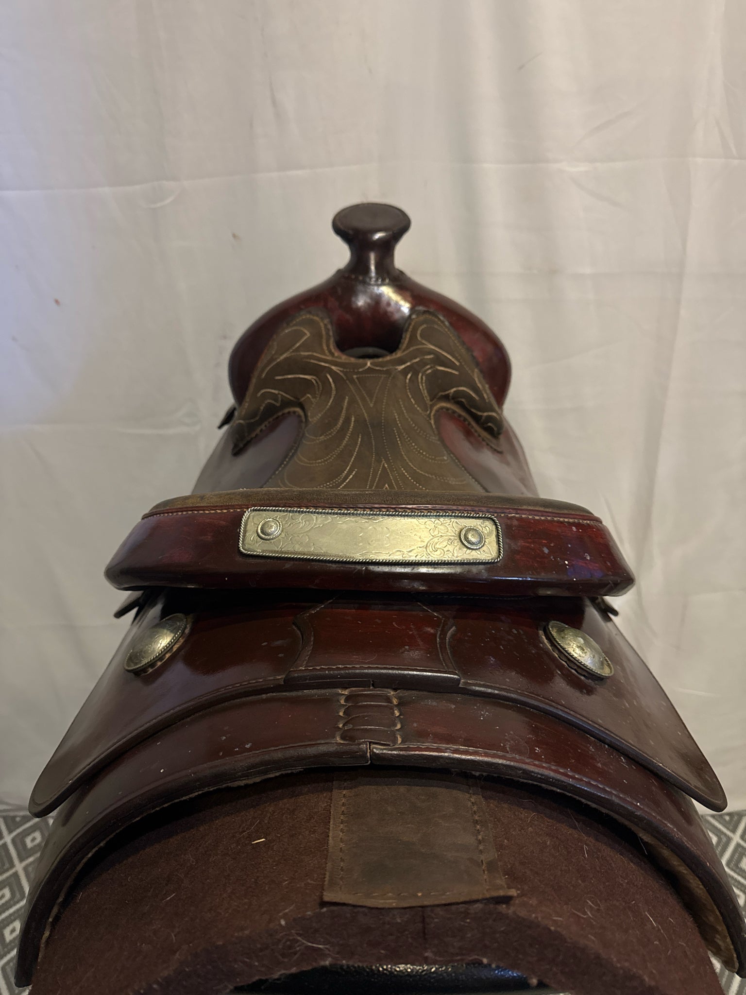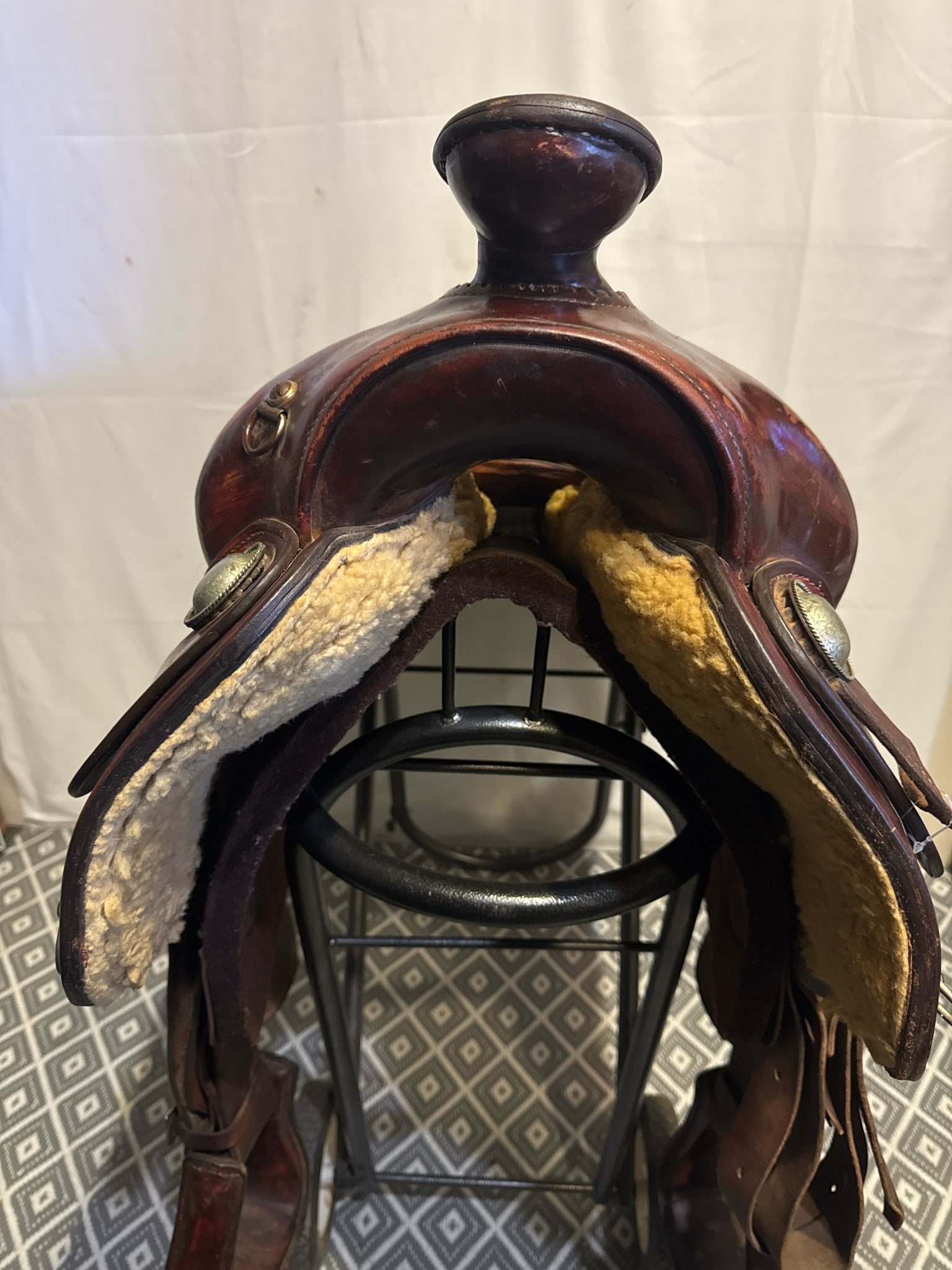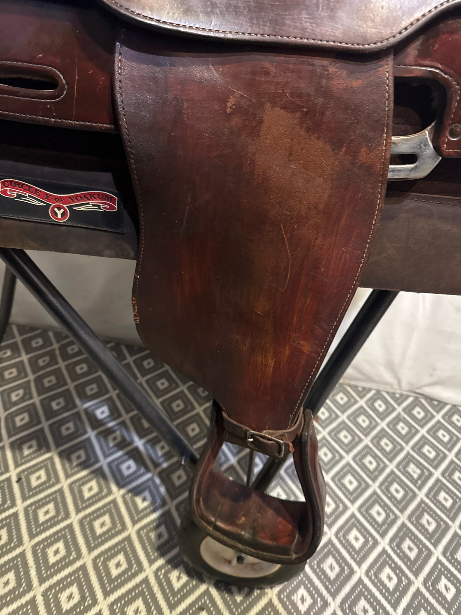 B Seat Size 15" Dark Oiled Leather 7" USED Good Pleasure Saddle