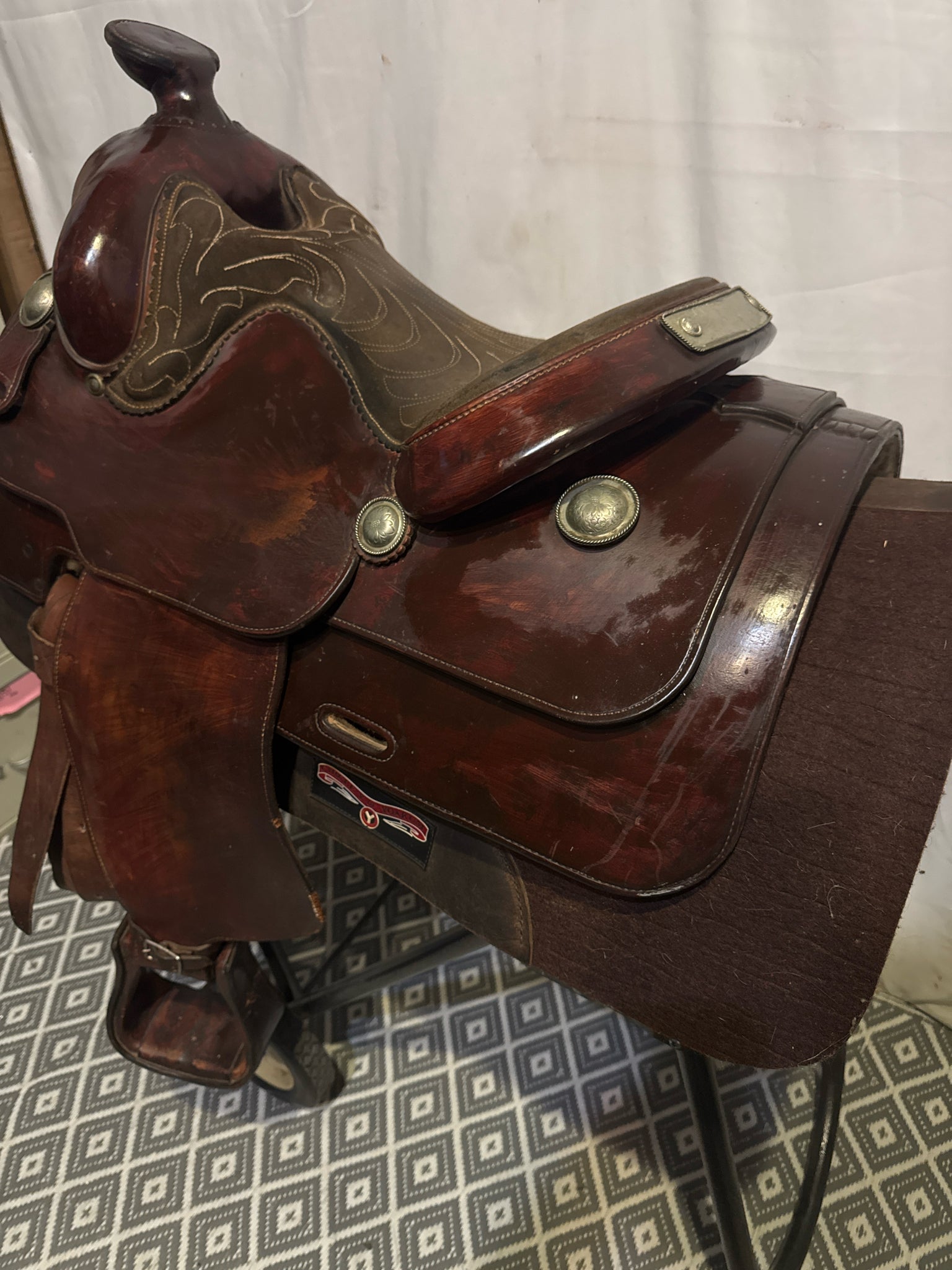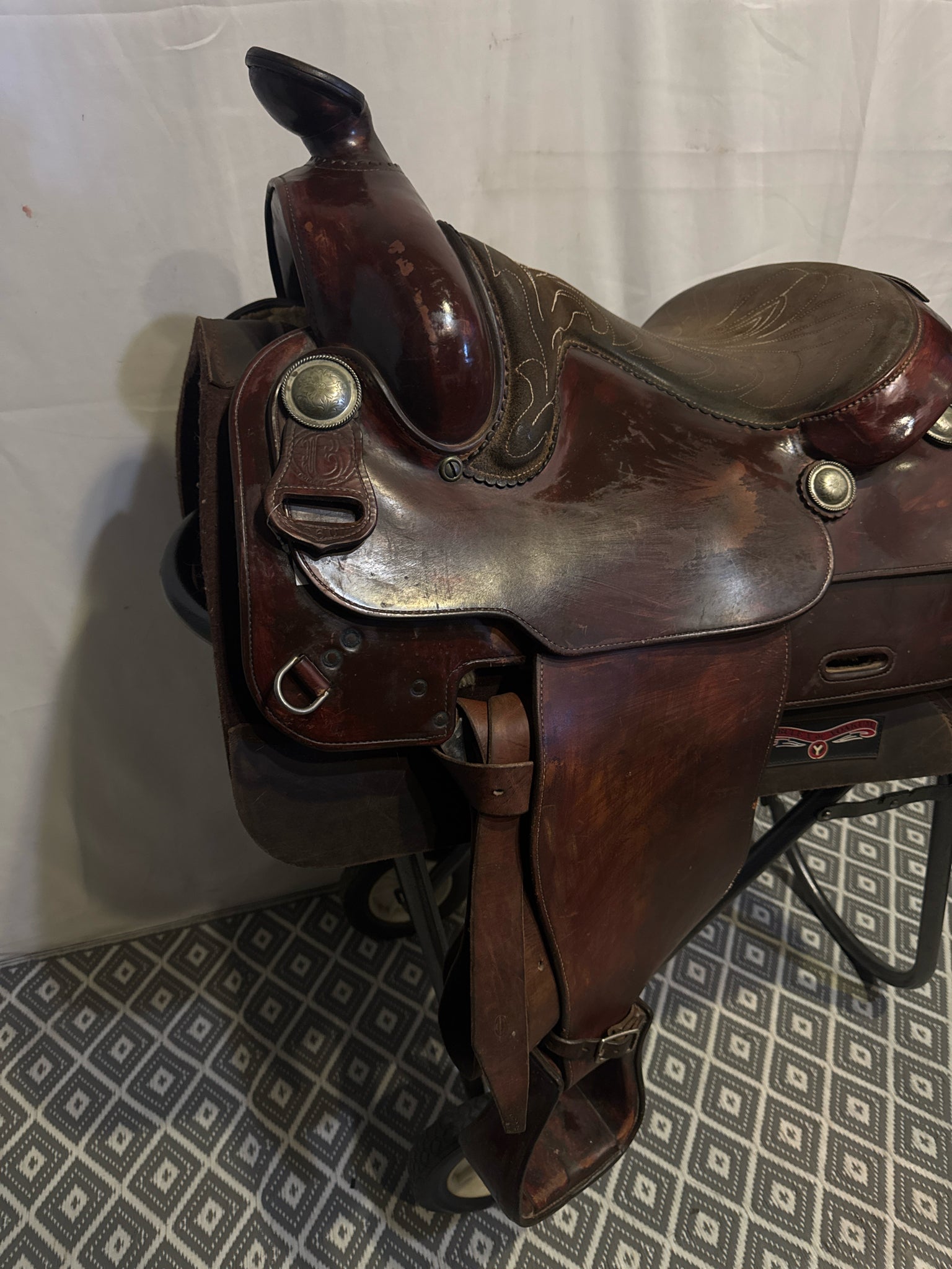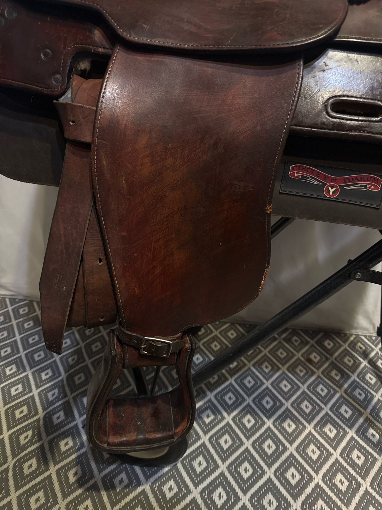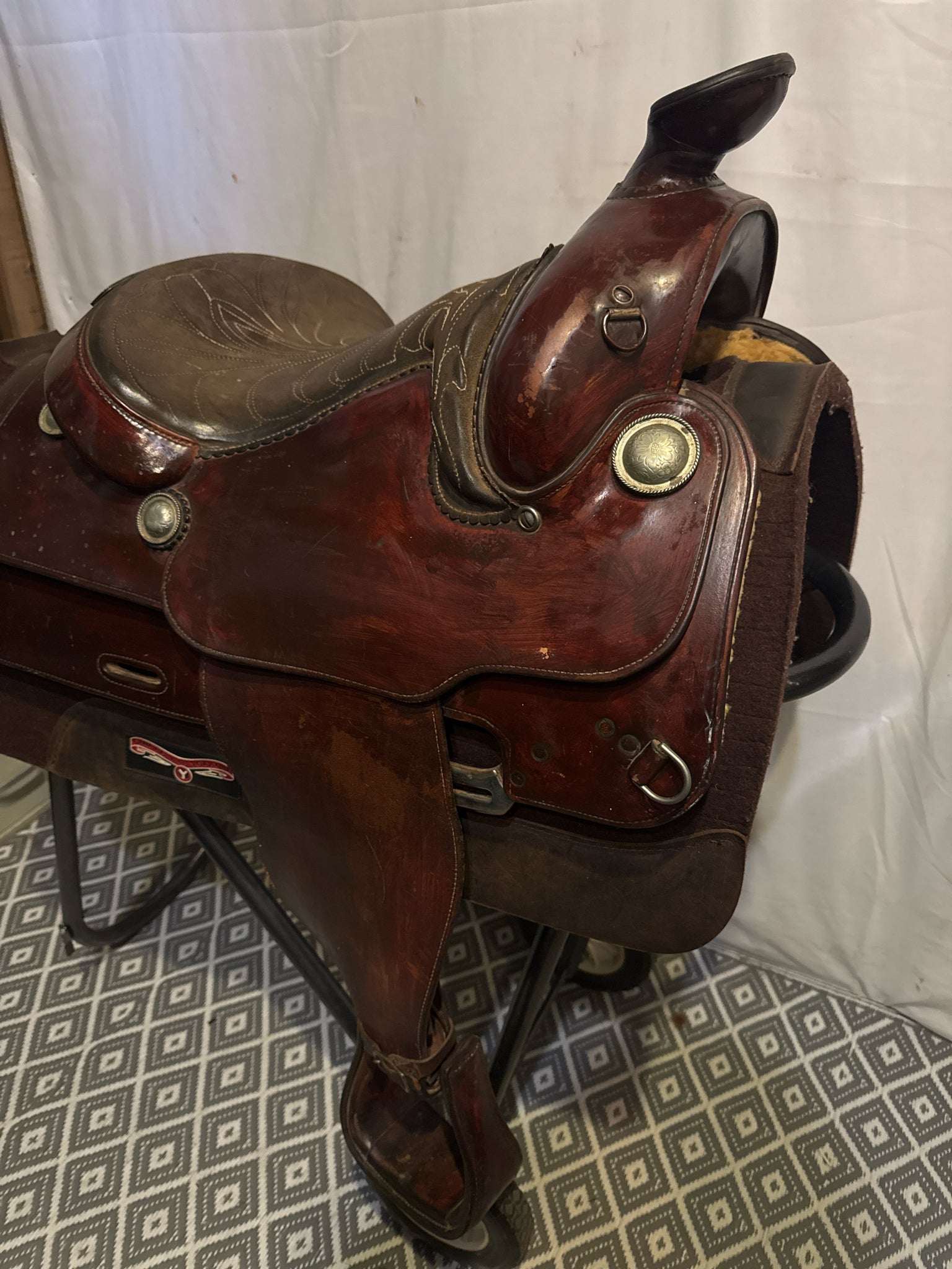 B Seat Size 15" Dark Oiled Leather 7" USED Good Pleasure Saddle