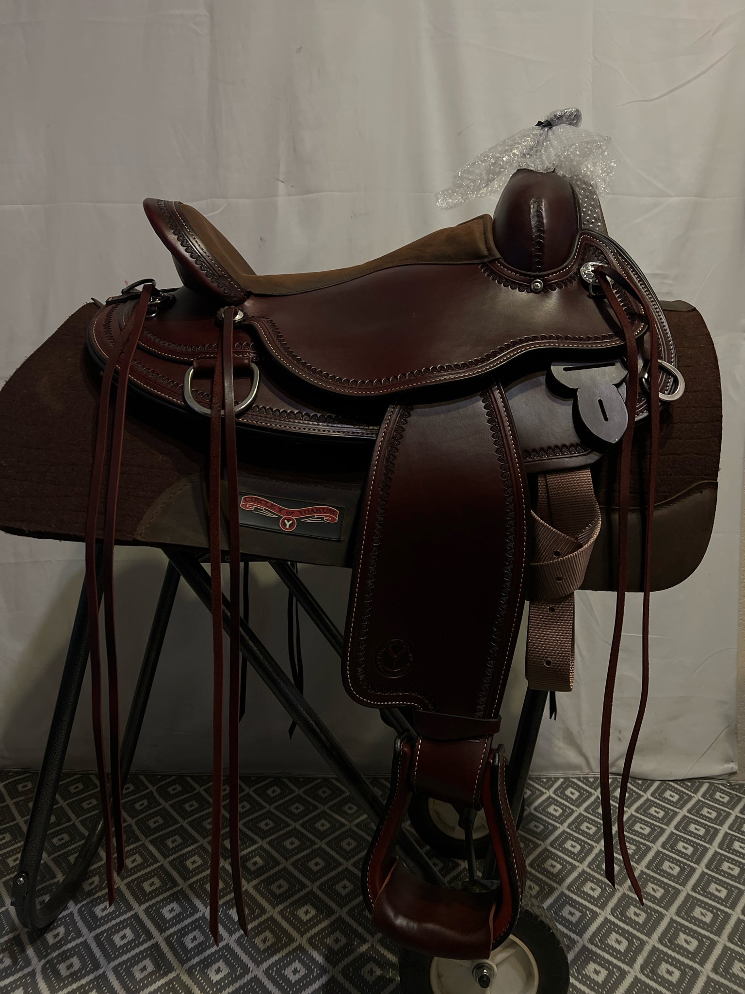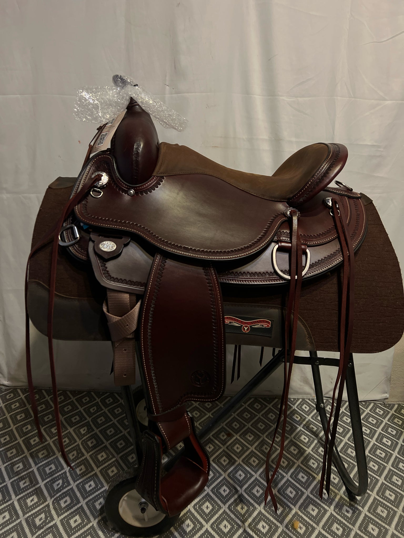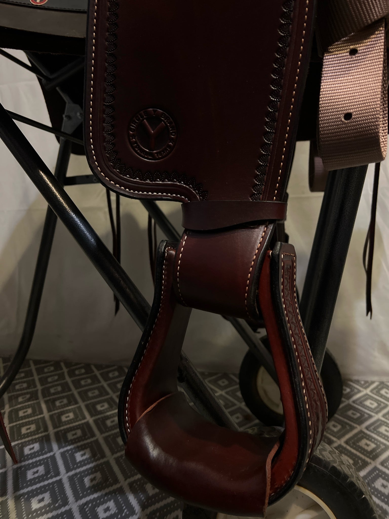 Circle Y Omaha Seat Size 16 Dark Oiled Leather FQHB Border NEW Pleasure Saddle